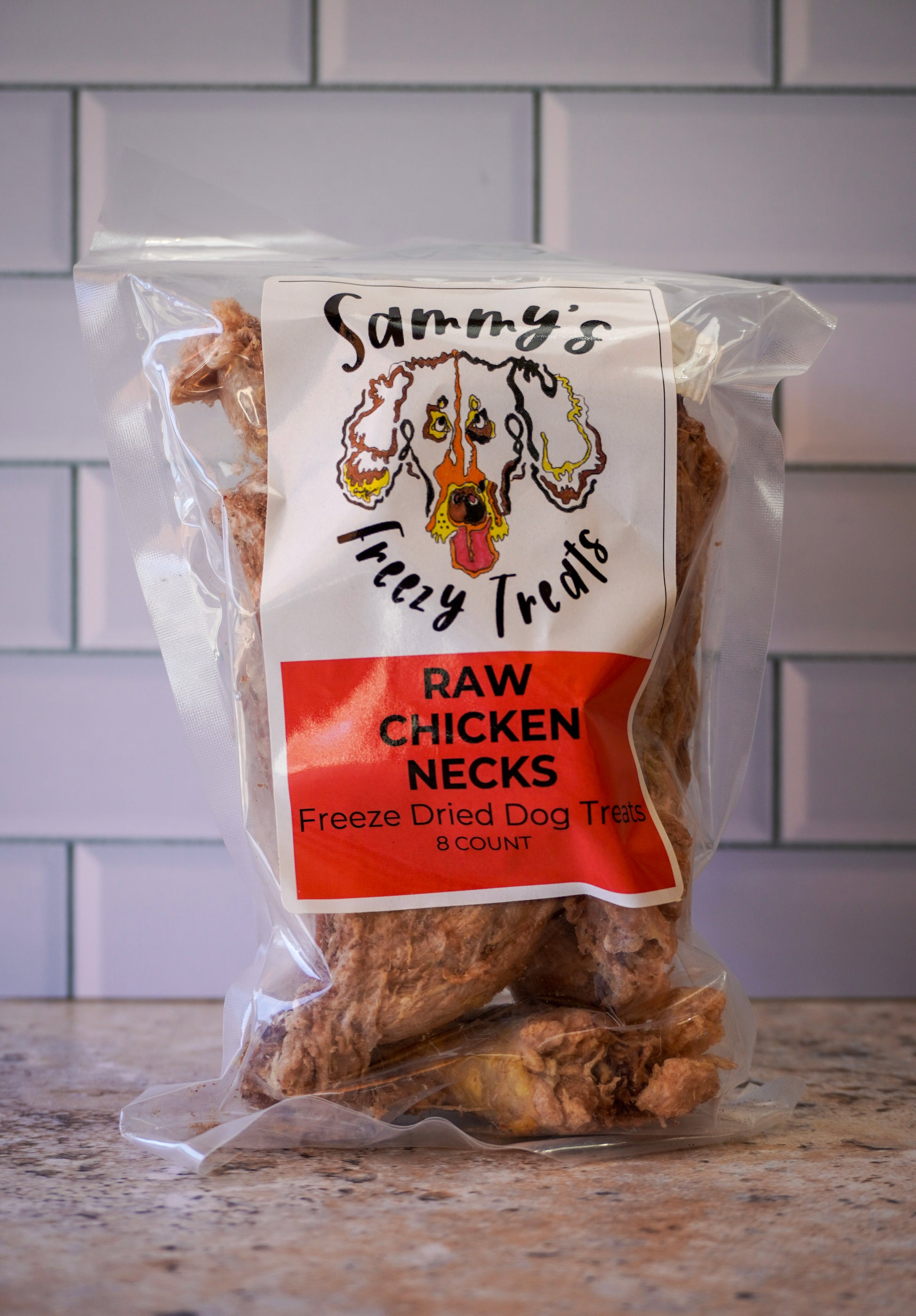 We've taken raw chicken necks and freeze dried them until they become your pups favorite crunchy treat. Don't worry about bones! These mostly cartilaginous neck bones stay raw so when they are freeze dried they crumble and as a bonus, they're great for healthy teeth!